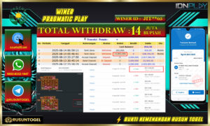 Selamat kepada .  BPK. B***   yang akhirnya mendapatkan jackpot besar PRAGMATIC PLAY !!!  Pada tanggal  14 AGUSTUS 2025 di situs bandar togel terpercaya RUSUNTOGEL . Dalam WITHDRAW sebesar Rp.  14.000.000,- di bayar dengan lunas dan prosesnya di lakukan secara cepat oleh pihak RUSUNTOGEL . Dengan bukti yang kami berikan sudah seharusnya menjadi hal yang bisa anda semua bayangkan betapa aman dan nyamannya pelayanan yang di berikan RUSUNTOGEL kepada para membernya. Tentunya jika anda masih bingung mencari situs bandar togel online terpercaya, anda bisa segera melakukan pendaftaran dan bermain di situs togel online terpercaya dan terbukti membayar semua kemenangan jumlah berapapun seperti situs RUSUNTOGEL !.
